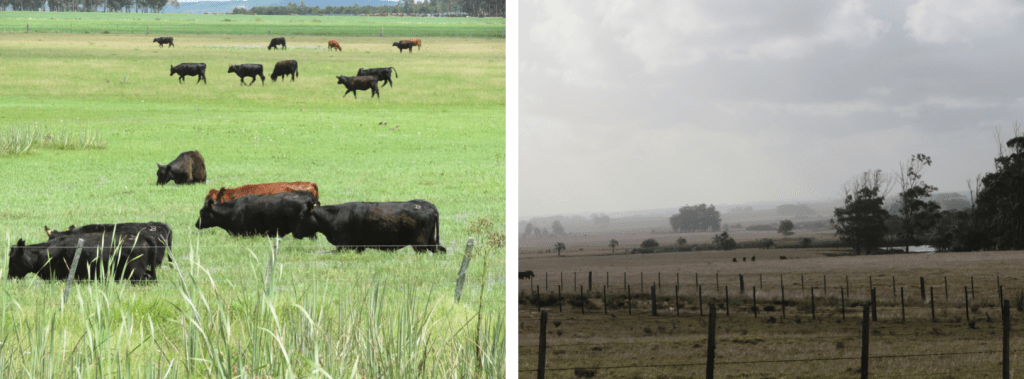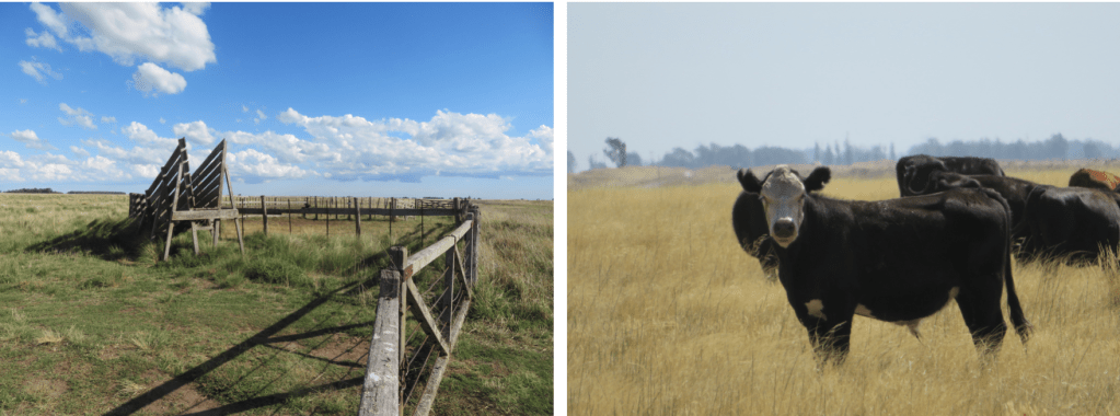 A partir de Viedma, termina a estepe, dando lugar a uma imensa pradaria onde abunda, os ranchos de bovinos. Na primeira foto rampa para entrada do gado nos camiões de transporte.