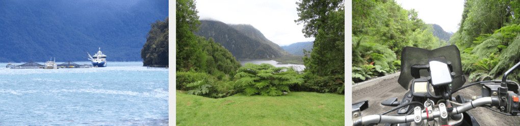 A natureza deslumbrante no pequeno troço da Carretera Austral, entre o porto de Leptepu e Caleta Pillan.