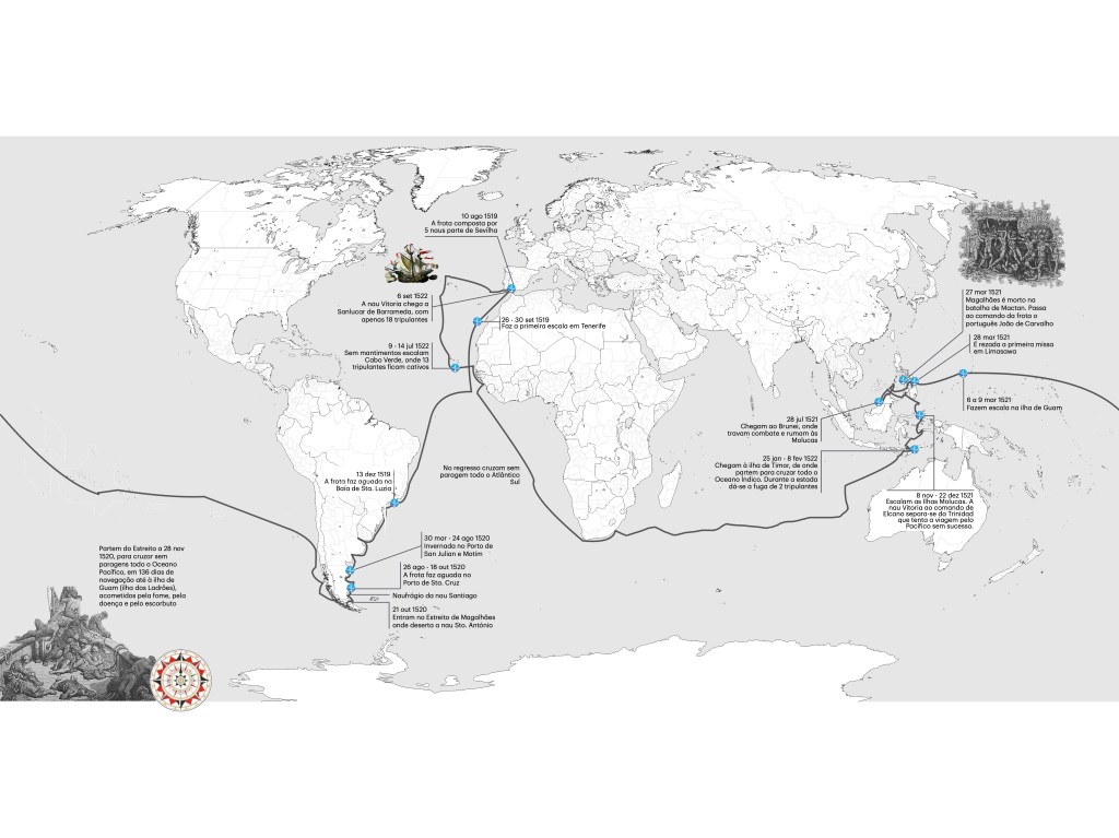 Mapa da Primeira Viagem de Circum-navegação, comandada por Fernão de Magalhães e Sebastian Elcano. (1519 – 1522)