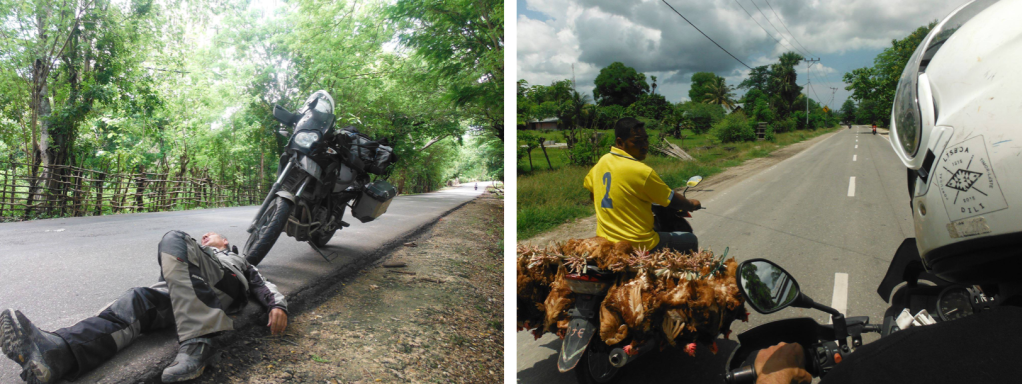 A descansar as costas na estrada, depois de passar a fronteira Timor-Leste / Indonésia.