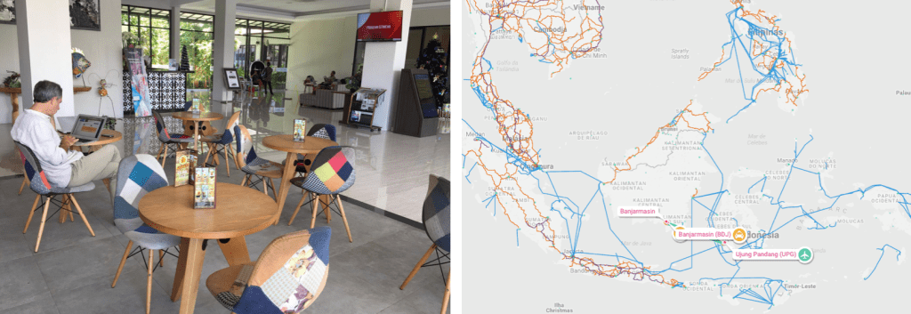 Mapa da complexa rede de ligações marítimas inter-ilhas da Insulíndia.