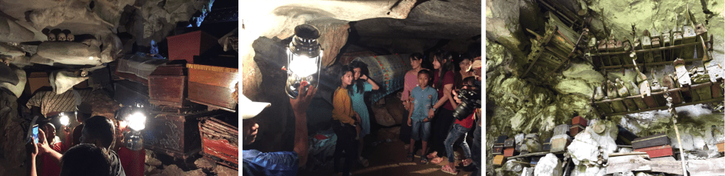 Também em Londa, uma serie de grutas extensas guardam os restos mortais dos falecidos habitantes da aldeia. Guiados por locais munidos de lâmpadas de querosene, hordas de turistas nacionais fazem poses fotográficas e selfies sorridentes junto aos caixões em exposição.